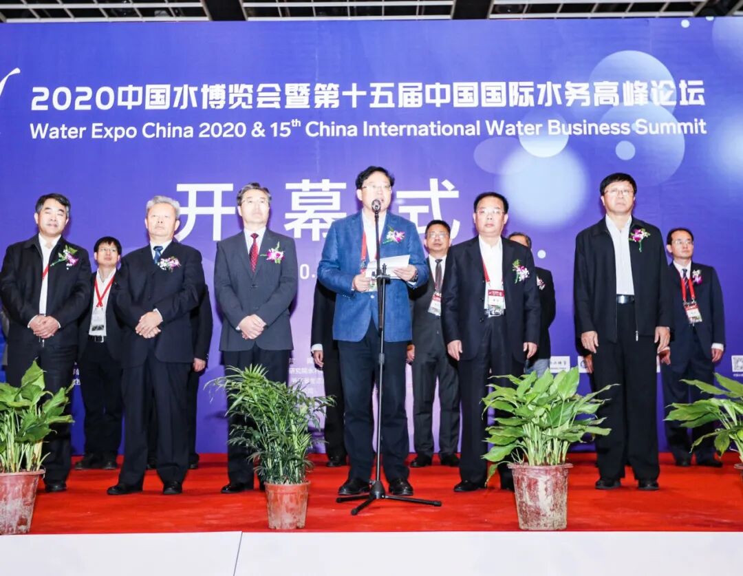 2020/10/2810月28日上午,以“融合融通产学研 共建共享幸福河”为主题的2020中国水博览会暨第十五届中国国际水务高峰论坛在南京国际展览中心隆重开幕。